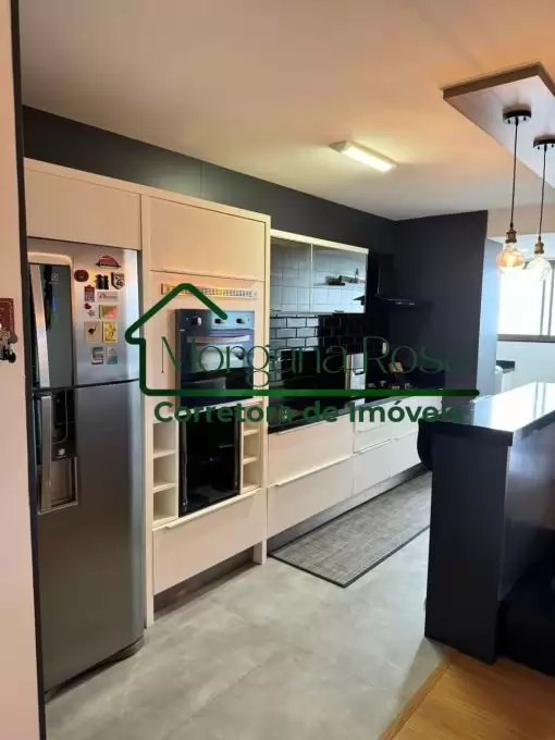 Com 103m² privativos, o imóvel possui 3 dormitórios (1 suíte), sala de estar e jantar integradas, sacada fechada, cozinha com área de serviço e banheiro social.